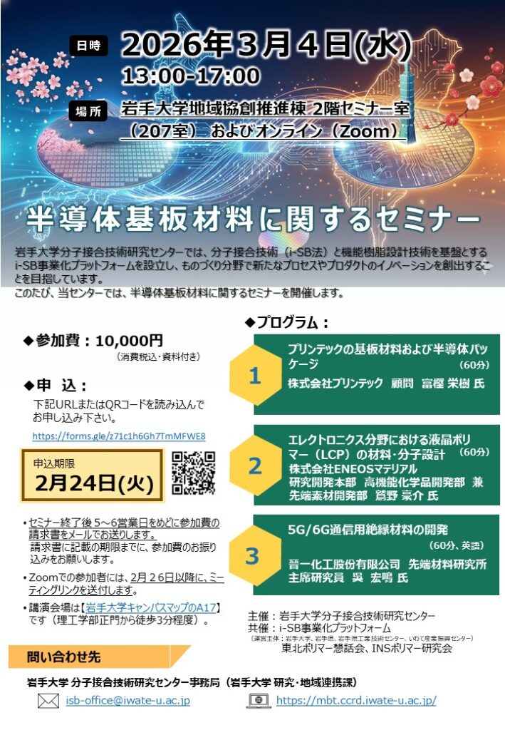 【2026.3.4(水)開催】岩手大学分子接合技術研究センター 半導体基板材料に関するセミナー
